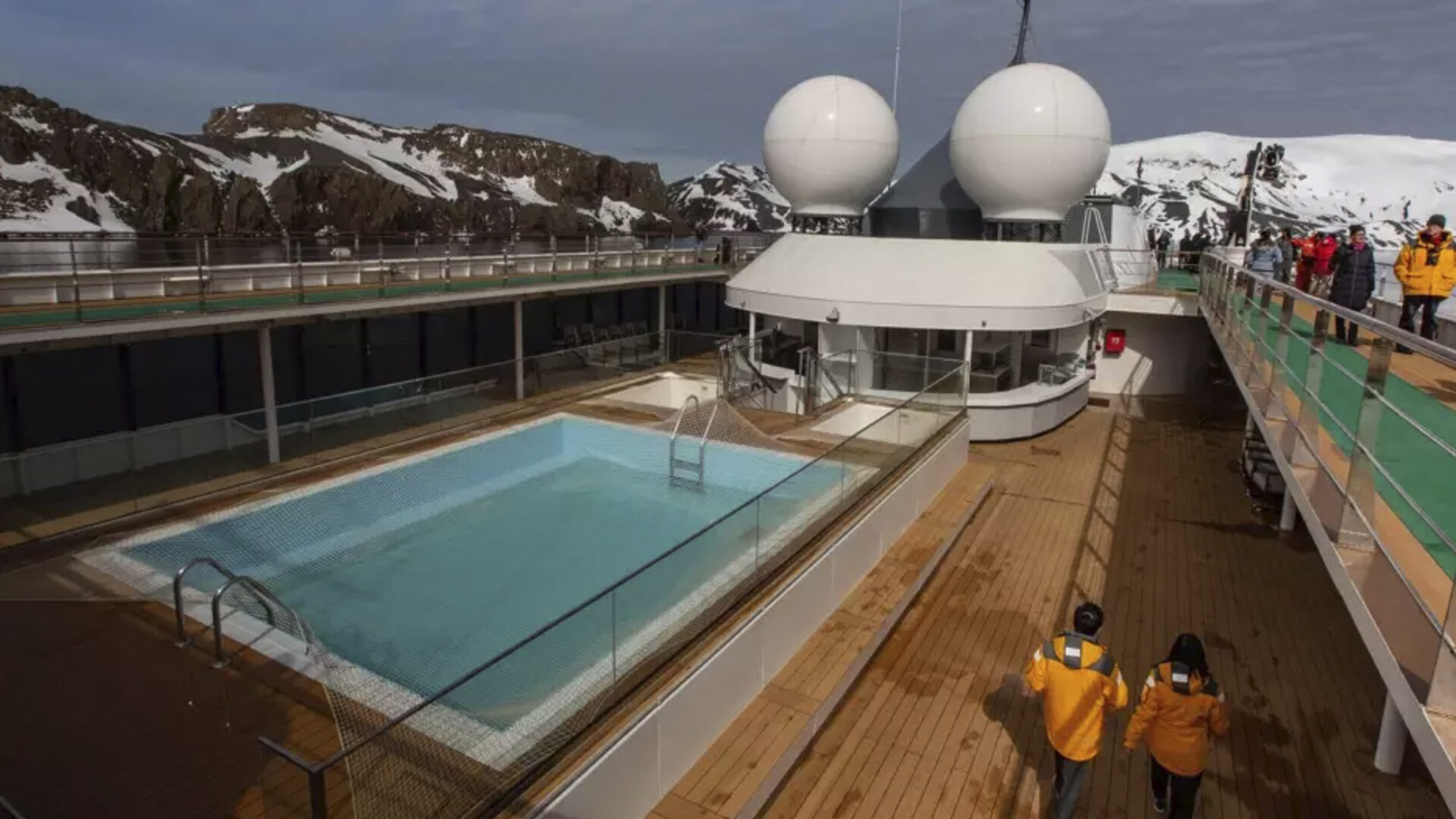 A bordo se hace especial hincapié en la salud y el bienestar, con instalaciones que incluyen una pista de atletismo al aire libre y una piscina exterior climatizada, con una zona infantil poco profunda separada de una piscina de inmersión de agua salada más profunda. También hay un pequeño gimnasio, un spa con vestuarios, duchas y taquillas, y una sauna, que es el mejor lugar para entrar en calor después de una zambullida polar.