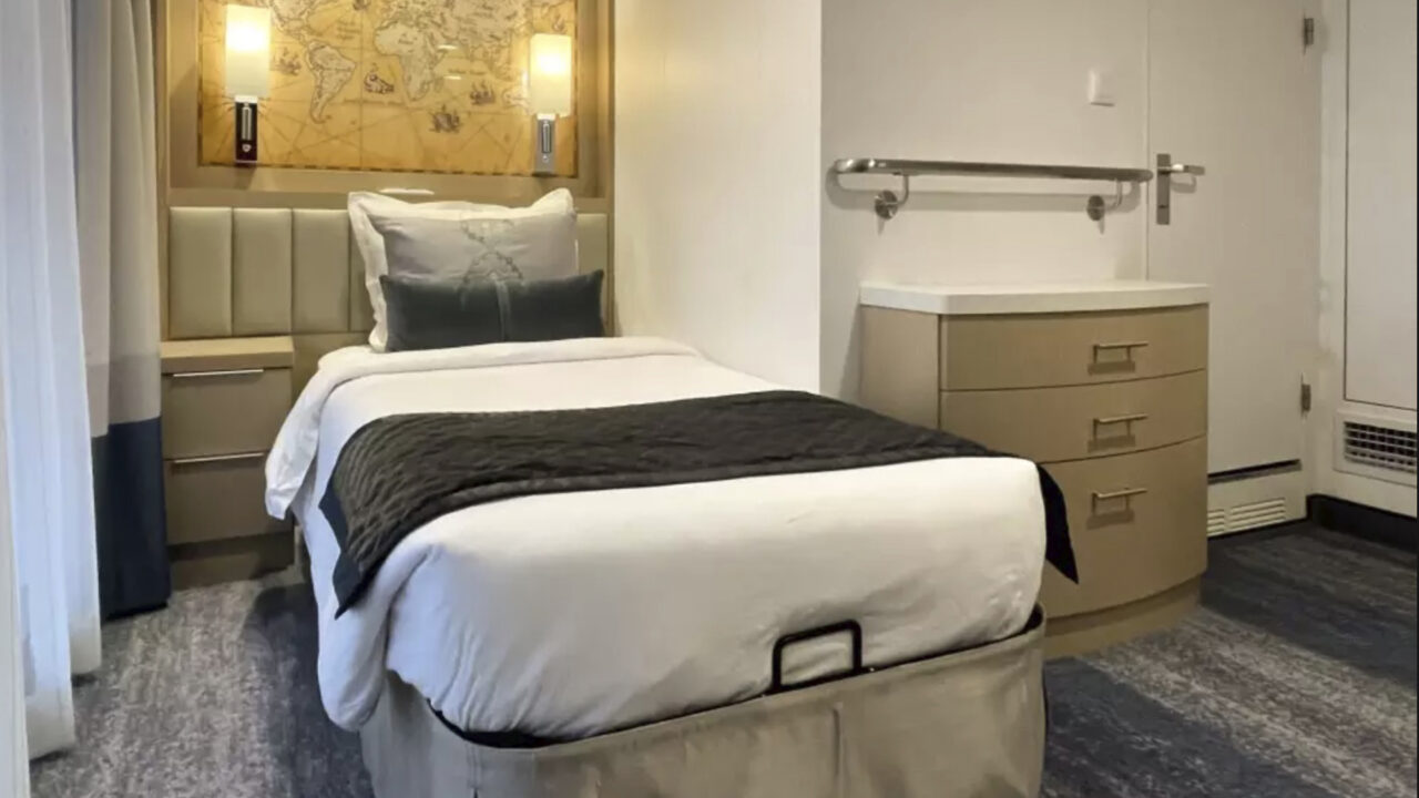 Nuestro espaciosa cabina triple cuenta con dos literas individuales inferiores y dos literas individuales superiores. Situados en la cubierta superior 3, estas cabinas más grandes ofrecen dos armarios y mucho espacio para relajarse.