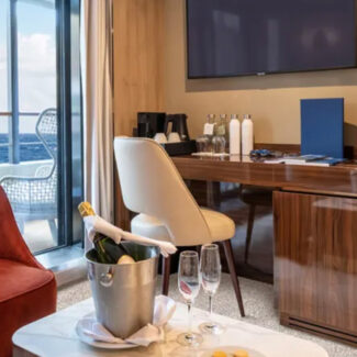 Balcony Suite - Las cabinas A son las cabinas premium y los más abundantes a bordo. Estos camarotes están situados en posiciones preferentes en las cubiertas 4 y 6, lo que facilita el acceso entre cubiertas mediante las escaleras internas o el ascensor.