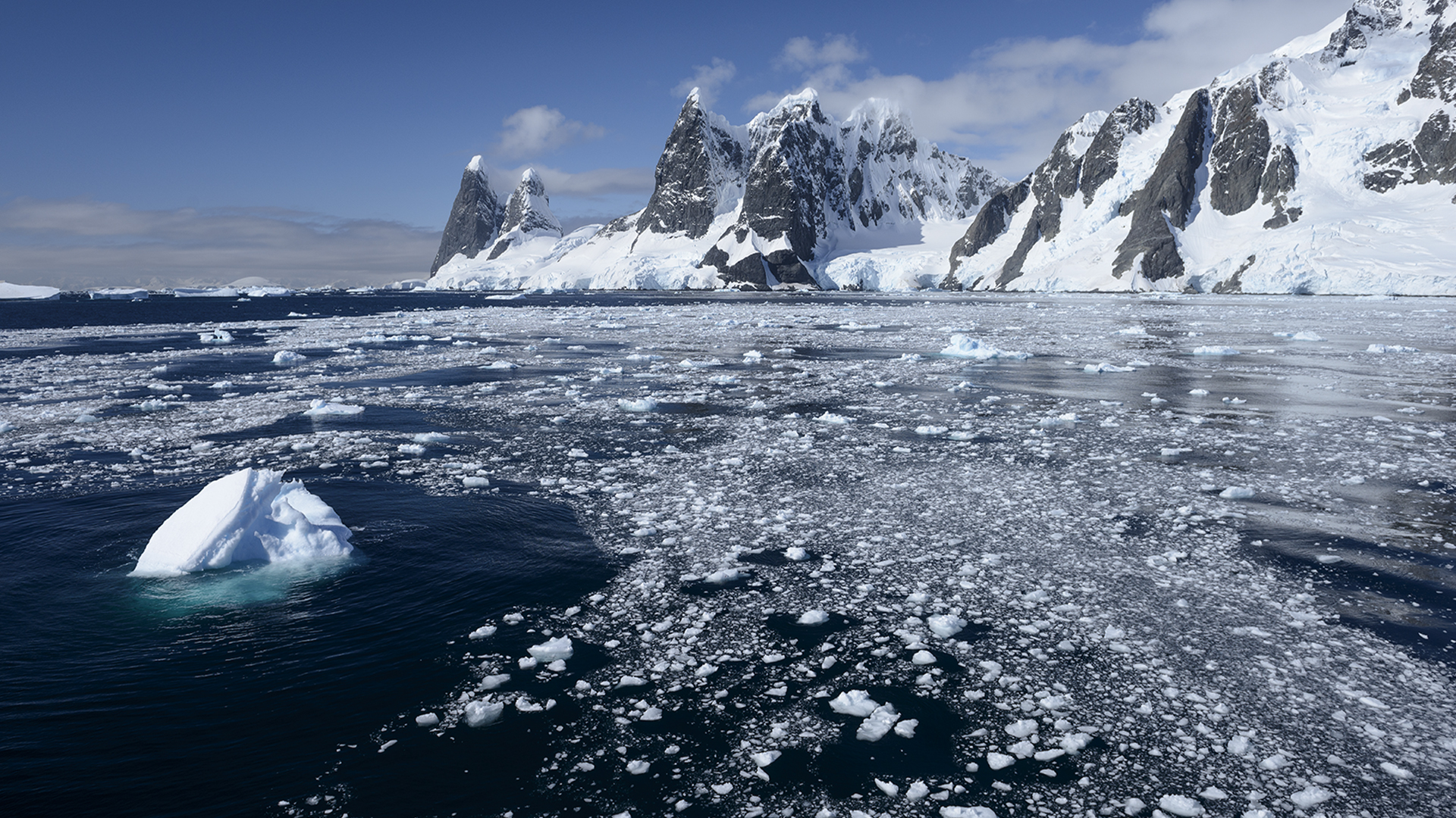 - Explore el impresionante estrecho de Gerlache, donde brillantes acantilados de hielo y picos escarpados dominan el paisaje.