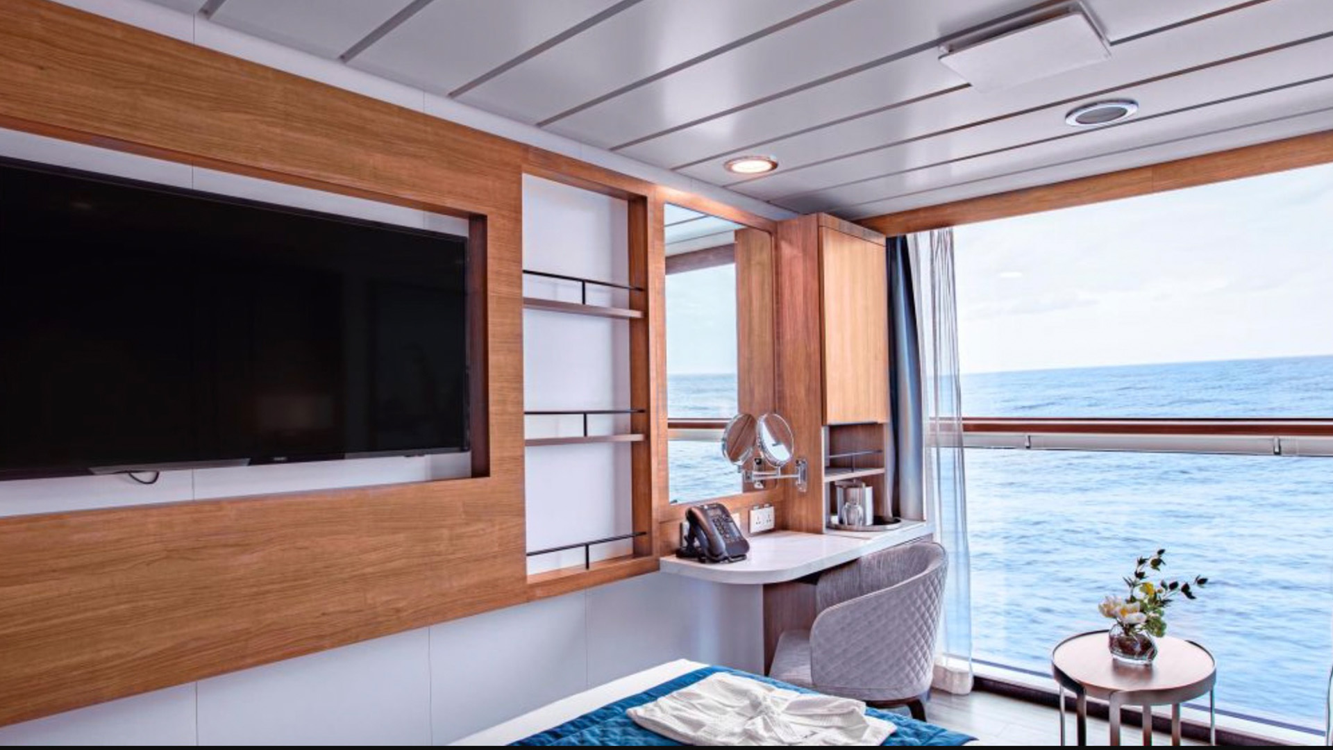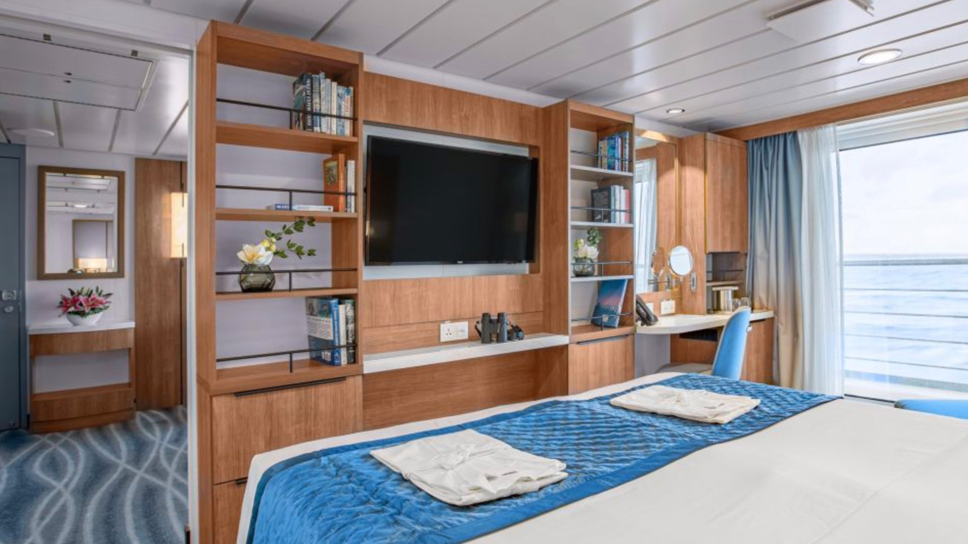 With a bit more room to stretch the legs, the Aurora Cabin Superior are perfect for polar adventurers who travel with plenty of gear. Located on Deck 7, the Staterooms feature french balconies, floor to ceiling windows, en-suite bathrooms and a comfortable desk area.