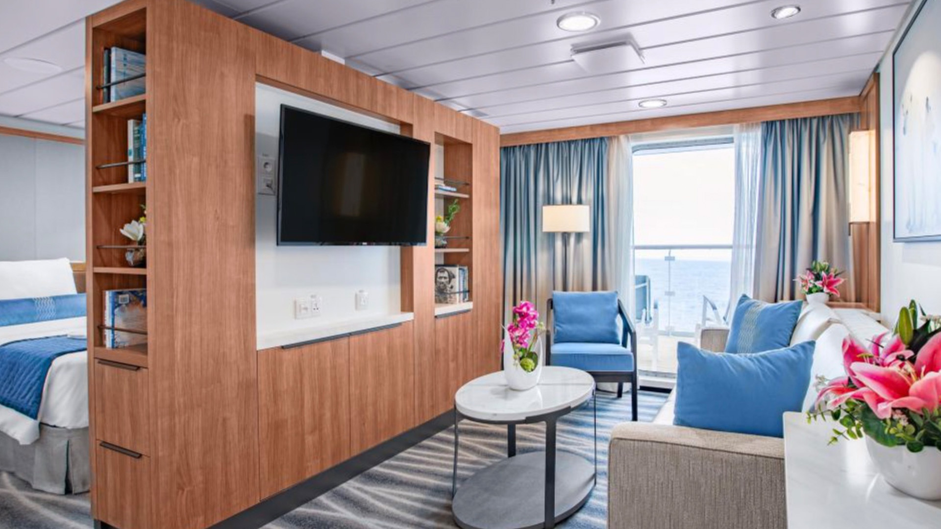 There are 23 Balcony Suite – A staterooms, and are considered the premium cabin aboard, and the most abundant on board. These cabins are located in preferred positions on Deck 4 and 6 which provides easy access between Decks via the internal stairs or elevator.