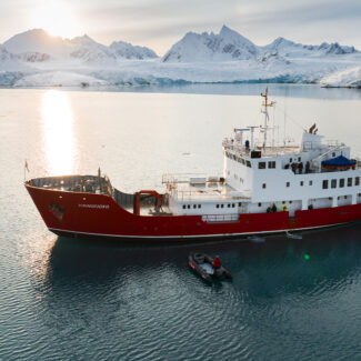 We might sail into a flooded volcanic caldera or land in icy bays where remnants of whaling paraphernalia lie abandoned. You may also have the chance to kayak among icebergs and seals or snowshoe to a stunning viewpoint.