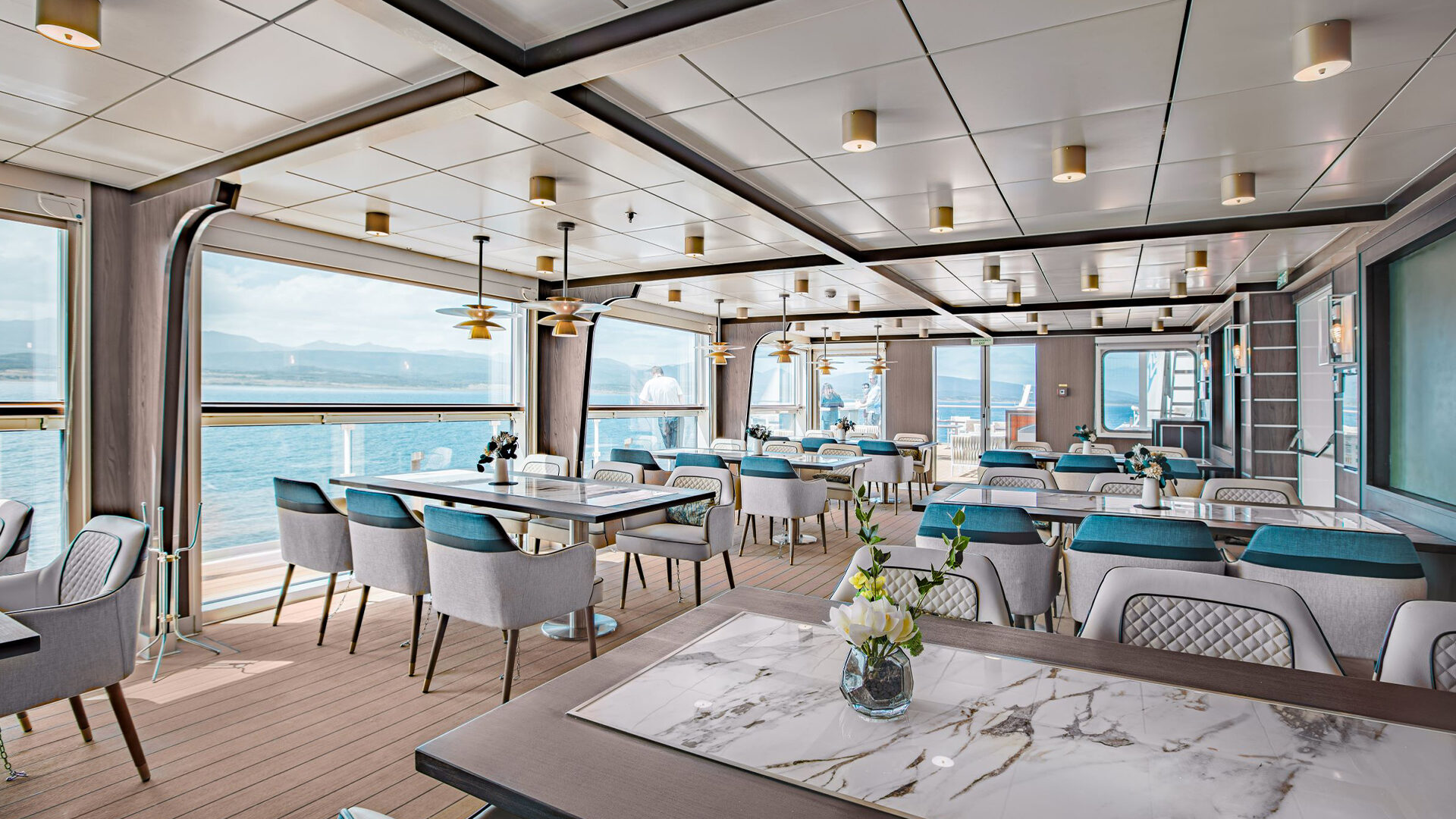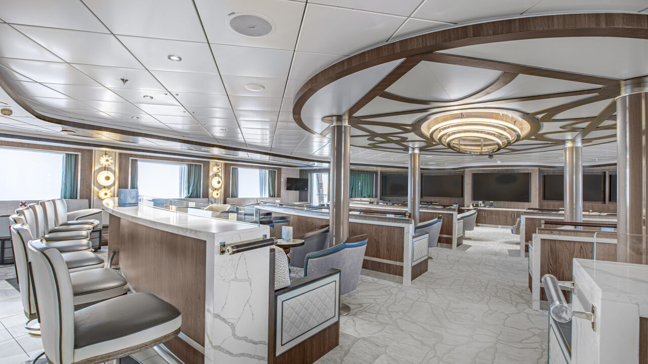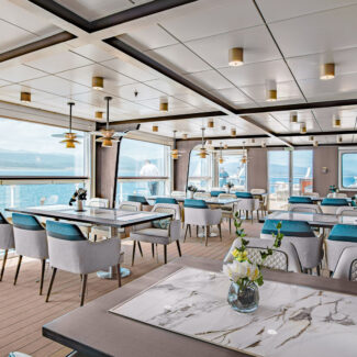 Additionally, virtually all of the indoor spaces are lined with floor-to-ceiling windows, so whenever you want to see what’s ashore and in the water, you’ll never be more than a couple of steps away from a spectacular polar landscape view, ensuring that you’ll never miss a sea lion or whale tail.