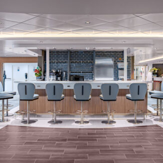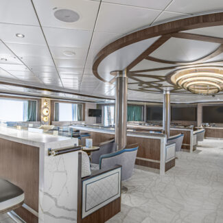 Deck 8, the Albatros barbeque deck, offers a casual-dining area with indoor and outdoor seating, making it the perfect spot for barbecues and other informal meals. On the Midnight Sun Pool Deck, you’ll find hot tubs under the stars, and an infinity pool.
